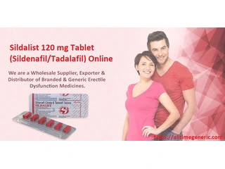 Sildalist 120 mg Tablet combines Sildenafil Citrate (100 mg) and Tadalafil (20 mg), offering dual-action treatment for erectile dysfunction (ED) in men. Manufactured by All Time Generic, this powerful medication helps increase blood flow to the penis, enabling stronger and longer-lasting erections during sexual activity. Sildalist 120 mg is an effective option for men who do not respond to single-ingredient ED drugs. It ensures quick onset and extended duration of action for improved performance and satisfaction. Buy Sildalist 120 mg Tablet (Sildenafil/Tadalafil) online from All Time Generic for genuine products, fast delivery, and discreet packaging.