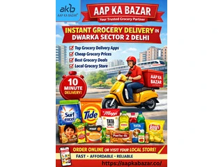 Get fast and reliable instant grocery delivery in Dwarka Sector 2 Delhi with Aap Ka Bazar. Enjoy 10-minute delivery, best deals, and affordable prices from a trusted local grocery app.