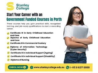 Upgrade your skills with gov funded courses designed to help you succeed in today’s competitive job market. These courses cover various industries, providing essential knowledge and practical experience to enhance your employability. Whether you're a local or international student, you can benefit from flexible study options and expert guidance. Enroll at Stanley College to access top-tier education and career support. Discover the best colleges in Perth, Australia, for international students offering government-funded programs!