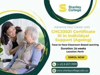A CHC33021 Certificate III in Individual Support course provides a fast and practical pathway into the growing aged care sector. This individual support course at Stanley College equips students with essential skills to work in residential and community care settings while meeting industry standards. Ideal for career starters and upskillers, the course is offered through recognised colleges in Western Australia.