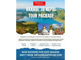 Set out on an unforgettable adventure from Raxaul to tour packages with Musafircab, thoughtfully designed to make your travel smooth, comfortable, and completely stress-free. From the moment you start your journey, we take care of every little detail so you can focus only on enjoying the experience. Our all-inclusive packages provide everything you need for a perfect holiday — comfortable transportation across borders, handpicked hotel accommodation to suit your budget and preferences, delicious meals, guided sightseeing tours of Nepal’s most iconic attractions, and hassle-free border assistance to ensure a smooth entry and exit process.
